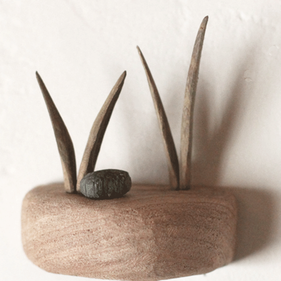 1. 2つの白い木の塊をヤスリで削って角を取って、自分の好みの球体にします。